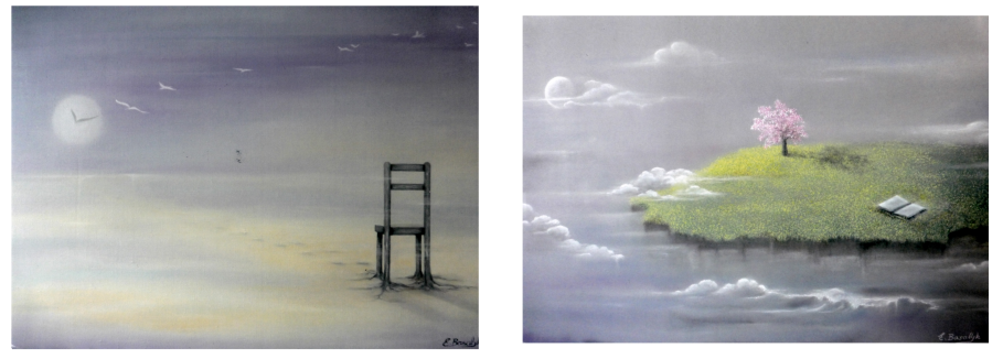 " Ma technique : La peinture à l’huile est une procédure assez longue. Des applications successives de fines couches de peinture entre les étapes avec séchage sont nécessaires. Ceci fait vivre les images et exprime la profondeur du rêve et de l’infini. "