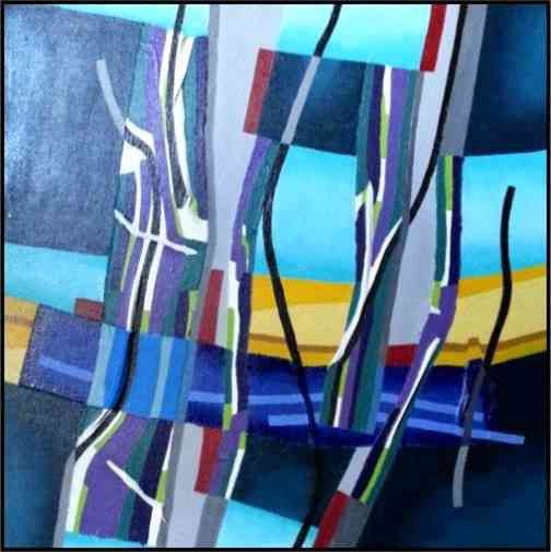 Avec l’abstraction, la peinture est libérée de toute représentation onirique ou naturaliste grâce à une écriture strictement plastique. La toile devient objet de création. La confrontation au plan du tableau, son organisation et sa structuration graphique par le trait, les translations ou rotations de diverses surfaces mais aussi par la tonalité des couleurs chaudes, froides, claires ou obscures, par l’utilisation de tissus marouflés et de sables divers, permet ainsi à mon imagination de chercher de multiples possibilités harmoniques et rythmiques, dictées à la fois par les ressources et les exigences de toute surface plane. Rythmes, cadences orientées, sollicitent la sensibilité et invitent le regard à un cheminement dans la toile.