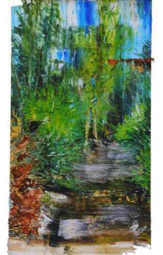 Développant le caractère original d'une peinture lyrique d'inspiration figurative, incluant une dimension abstraite. L'abstraction se découvre dans la partie haute du tableau et se fond à un sujet figuratif, tel le bassin d'Apollon à Versailles.